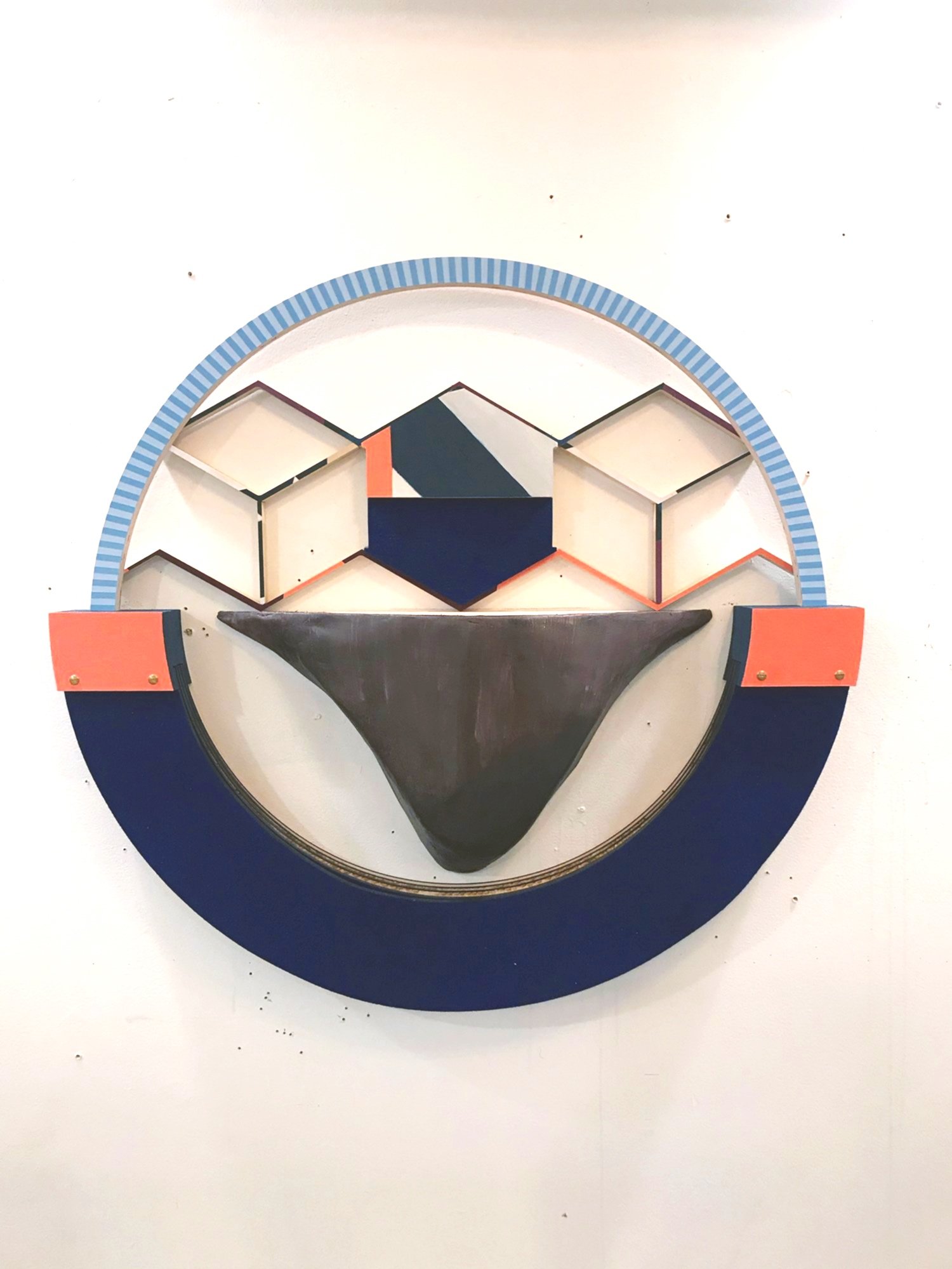 shelf life is a multimedia installation that depicts the 'landscape' and housing issues in the US. The geometric chevron patterns represent the market's ups and downs. They are juxtaposed with organic 'mounds' holding cookie-cutter homes positioned high up and 'out of reach' reflecting various dichotomies such as "stability vs. instability or representation vs. abstraction." In the end, shelf life reflects the inequality of the American dream.